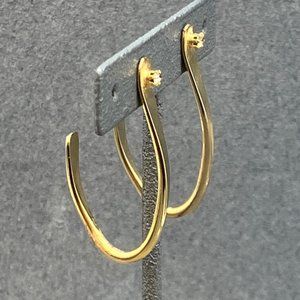 Pierced Open Hoop Earrings As Is Gold Rhinestone Six Prong Curved Retro BoHo