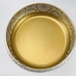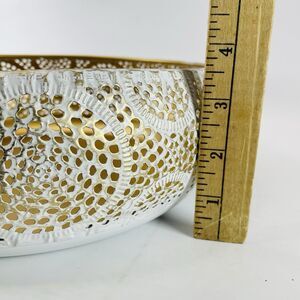 Pierced Punched Metal Mesh Counter Table Top Fruit Bowl Basket White Gold 10in
