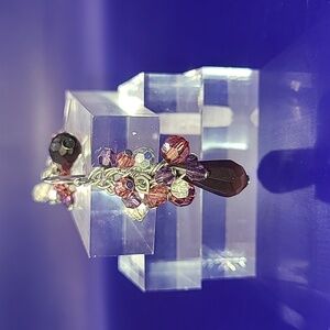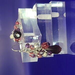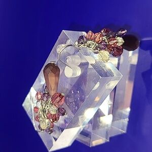 Pierced dangled beaded earrings. In purple colors. Pre-owned condition. No Makers mark.