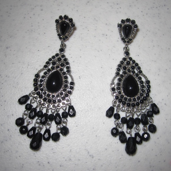 Silver with black stones. For pierced ears.