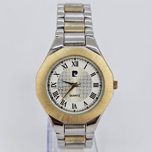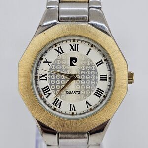 Piere Cardin 38MM Men's Watch Roman Numerals Gold Gray Bracelet 7" New Battery