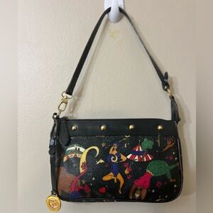 Stylish black women's bag with a vibrant pattern. Perfect for adding a pop of color to any outfit.