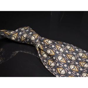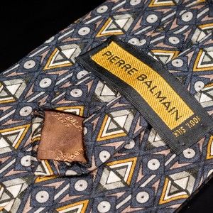 Pierre Balmain 100% Silk Tie Navy Brown Geometric Mens Luxury Necktie