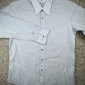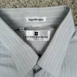 Pierre Balmain Paris Button Up Shirt Men's Size 39 Striped Long Sleeve With Logo