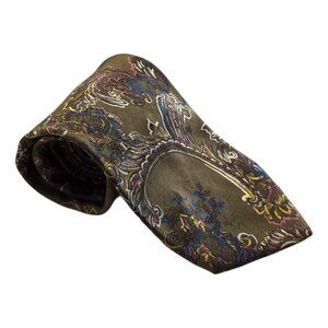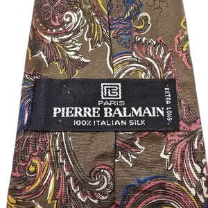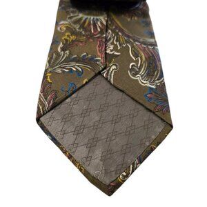 Pierre Balmain Paris Olive Green Paisley Extra Long Italian Silk Tie