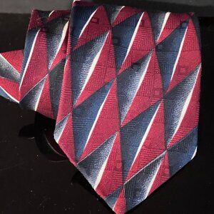 Pierre Balmain Silk Tie Red White Blue Abstract Geometric