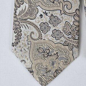 Beautifully patterned silk tie with a shades of cream, tan and brown in a floral and medallion pattern. This tie has a sheen to it. Perfect for a gift for yourself or a loved one.