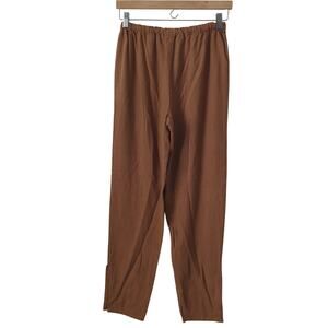 Pierre Cardin Chemise Womens Pants 6 Brown Trouser 100% Silk Natural Slit Ankle