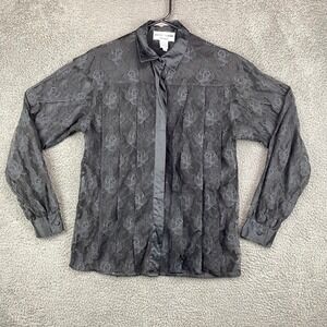 Pierre Cardin Chemises Womens Top Size 12 Black Floral Lace Silk Trim Blouse
