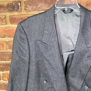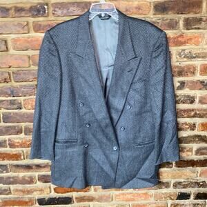 Pierre Cardin Gray Black Wool Double Breaster Blazer Jacket Sports Coat Size 46