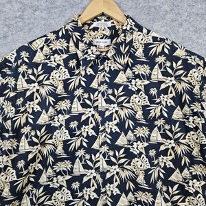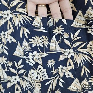 Pierre Cardin Hawaiian/Tropical Shirt Size XXL 100% Cotton Boats Palms Hibiscus