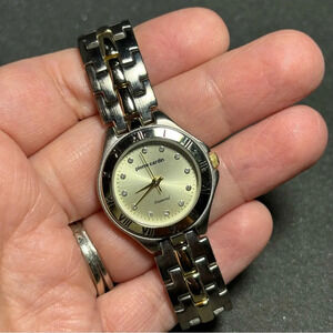 Pierre Cardin Ladies Watch Diamond Accent Quartz Two Tone Watch Working with new battery shows signs of wear such as light scratches on case band abd crystal as well as some discoloration of gold tone see pictures for reference