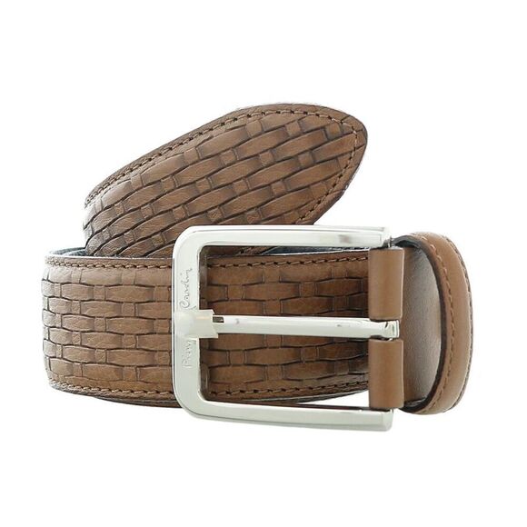 Elevating an over the top design with a light brown basket weave textured design, this Pierre Cardin belt makes a sophisticated addition to any gent's accessories edit. Crafted in Italy from genuine leather, the refined piece pairs effortlessly with suiting and denim alike.Great value gift item.