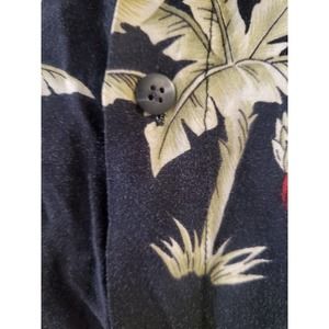 Pierre Cardin Medium Button Up Hawaiian Shirt Collared Black Korea Hula Palm