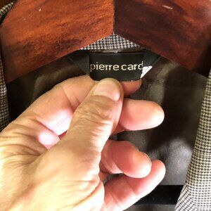 This Pierre Cardin blazer is a quintessential addition to a gentleman's wardrobe, crafted with attention to detail and a nod to timeless elegance. Constructed from a sophisticated wool blend, its gray plaid pattern imbues a refined touch, suitable for both professional settings and social gatherings. The jacket's tailored fit ensures a flattering silhouette, embodying a harmonious blend of tradition and contemporary style. Ideal for those who appreciate classic menswear with a modern twist, this blazer is a testament to sartorial excellence.