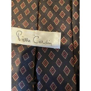 This Pierre Cardin men's tie, now with a Formal, Office, Luxury style, features a geometric pattern in primarily brown color and is crafted from high-quality fabric. The tie remains a designer piece with a classic width and length, suitable for formal and business occasions while exuding a luxurious feel, making it ideal for professional settings or special events. The item is pre-owned with light wear.