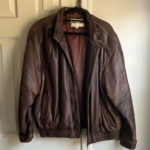Sophisticated leather jacket by Pierre Cardin. Features a sleek design in dark brown. Ideal for versatile styling.