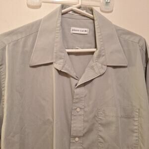 The Pierre Cardin Men's Dress Shirt is a stylish and elegant addition to any man's wardrobe. Made from a comfortable cotton blend in a solid gray color, this button-down shirt features a collared neckline and long sleeves, perfect for a business meeting or a casual day out. The vintage design with a touch of modern sophistication, along with its designer brand, makes it a versatile piece suitable for all seasons and occasions. Easy to care for with machine washable instructions, this shirt is a timeless classic that exudes sophistication and style.