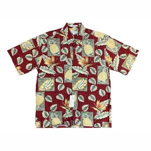 Pierre Cardin Large Hawaiian Shirt Short Sleeve Cotton Palm Fronds Pineapple NWT