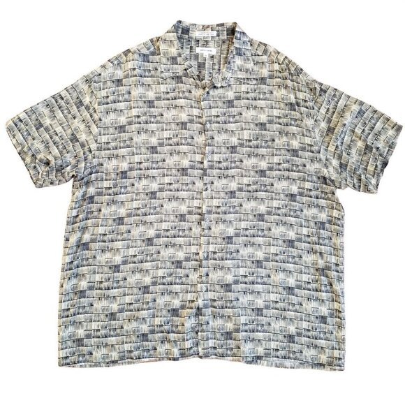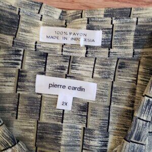 This Pierre Cardin shirt offers a stylish addition to a professional wardrobe. Crafted from 100% rayon, it features a unique geometric pattern in neutral tones, providing both comfort and aesthetic appeal. Ideal for office wear or casual gatherings, this shirt ensures a refined look with its classic design.