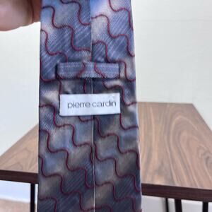 Pierre Cardin Men's Silver Gray Red Printed Abstract 100% Silk Classic Neck Tie