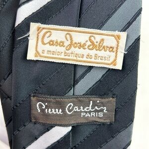 Vintage Pierre Cardin Paris Men’s Black Gray White Striped Tie Casa Jose Silva