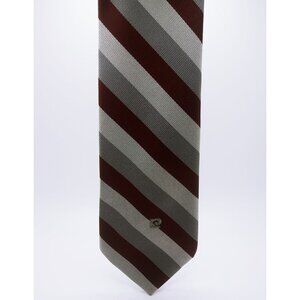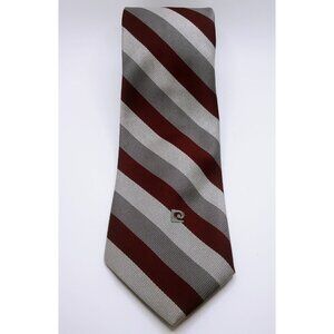 Pierre Cardin Parris New York Men's Tie Burgundy Gray Stripes Logo 60" Lx 3.25"W