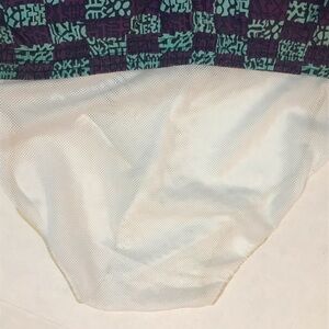 Pierre Cardin Purple and Teal Geometric Print Swim Trunks Men L. Vintage 90s. Excellent used condition. Includes mesh liner. Drawstring waist. No holes, stains or damages. Measures about 18” across the elastic waist with a 5” inseam and 11” rise. From a non-smoking home.
