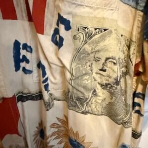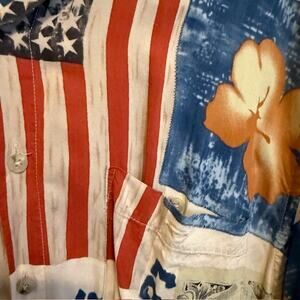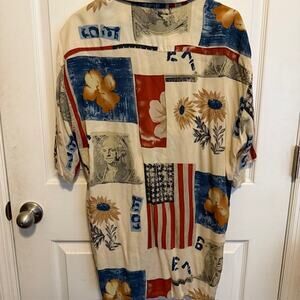 Pierre Cardin Short Sleeve Button Down 100% Rayon - Americana / USA Print SZ L