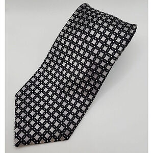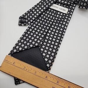 Pierre Cardin Silk Necktie Black and Silver Geometric - Like New