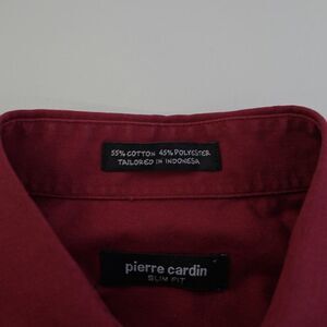 Pierre Cardin Slim Fit Red 2XL Collared Dress Shirt Pocket Cotton Blend