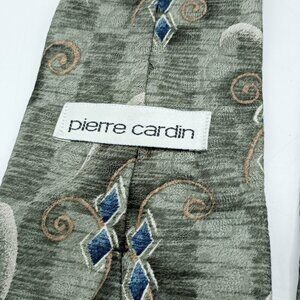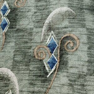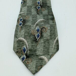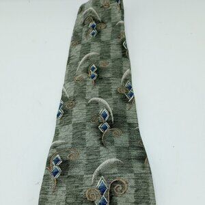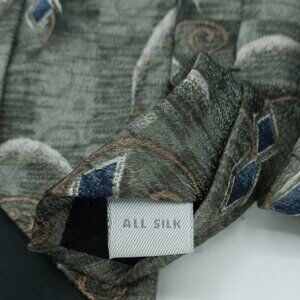 Gray, Tan, White, Blue. Swirl & diamond pattern. Silk.