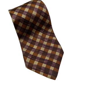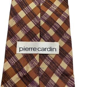 Pierre Cardin Tie Men's Necktie Check Plaid Brown Beige Maroon Classic Retro