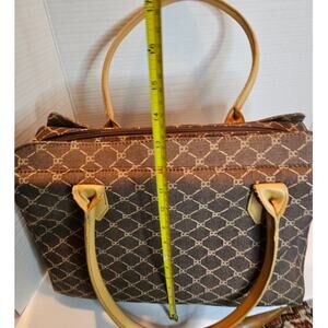 Pierre Cardin Travel Laptop Tote Briefcase Canvas Brown Tan 2 top handles VTG