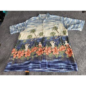 Pierre Cardin Tropical Girls Boat Lighthouse Palms Flowers Button Down Shirt L