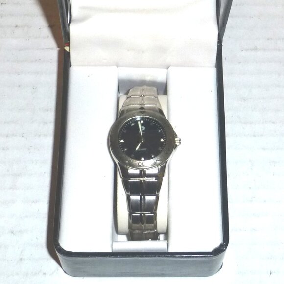 CURRENTLY WATCH DON'T WORK, MOST LIKELY NEED NEW BATTERY, I DIDN'T TRY TO REPLACE THE BATTERY, SO I AM SELLING THEM AS IS UNTESTED, CASE IS INTACT, DIAL IS INTACT, SOME SURFACE WEAR IS PRESENT ON THE BAND, CROWN WORKS BY MOVING HANDS MANUALLY, IT WILL INCLUDE WATCH CASE, IT HAS SOME EXTERIOR AND INTERIOR WEAR