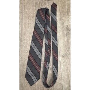 Pierre Cardin Vintage 60s 70s Wool Neck Tie Gray Burgundy Stripe Italy Made 56x3