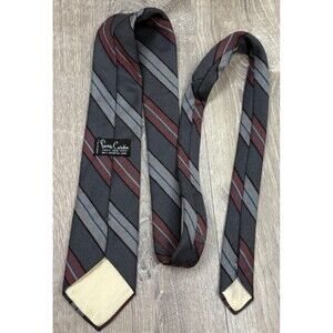 Classic vintage style meets timeless business wear in this Pierre Cardin tie. Made in Italy of 100% imported wool, this 56x3 inch necktie features a traditional diagonal stripe in gray, burgundy, silver, and blue. The wool fabric adds texture and richness, giving it a refined look that complements suits, blazers, and dress shirts. With its late 1960searly 1970s craftsmanship, this tie captures the elegance of Pierre Cardins designer menswear while staying versatile for office, preppy, or formal wear. A great choice for collectors of vintage designer fashion or anyone looking for a quality heritage piece. Excellent condition for its age.