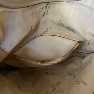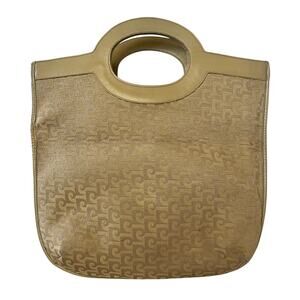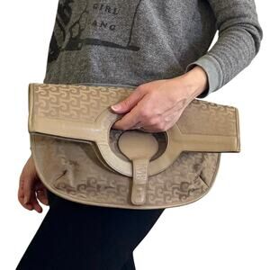 Pierre Cardin Vintage Jacquard Logo Beige Leather Foldover Tote Evening Bag