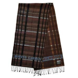 Classic brown tartan jacquard weave scarf from Pierre Cardin, circa 1990s.