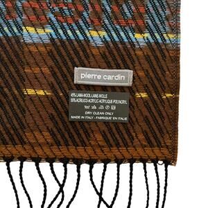 Pierre Cardin Vintage Jacquard Logo Brown Plaid Wool-Blend Fringe Muffler Scarf