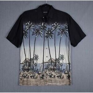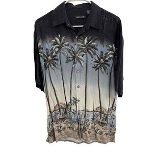 Pierre Cardin Vintage Tropical Palm Tree Print Short Sleeve Hawaiian Shirt Mens