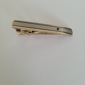 Pierre Cardin Vintage Two Tone Striped Tie Clasp Clip Bar Silver Gold Retro