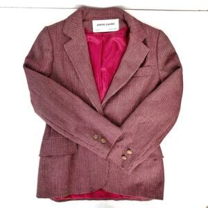 Pierre Cardin vintage wool blazer, 1990s wine red blazer, academia style jacket, Ivy League preppy blazer, raspberry satin lined jacket, equestrian style riding blazer, Ralph Lauren equestrian jacket, YSL vintage wool blazer, Armani tailored blazer, old money aesthetic outerwear, collegiate prep style wool blazer, structured vintage designer fall jacket
