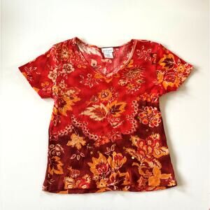 Pierre Cardin Women's Medium Top Y2k Sequin Floral Leaves Art To Wear Ribbed