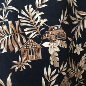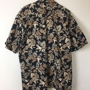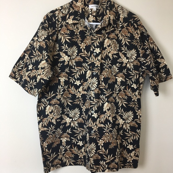Pierre Cardin black and tan Hawaiian print short sleeve button down shirt 100% cotton. Like new! size L