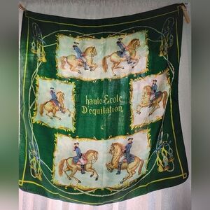 Vintage Pierre Cardin 100% silk scarf in original packaging, featuring a connection to equestrianism and Hennessy Cognac.