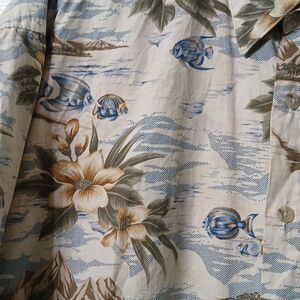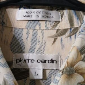 Pierre Cardin tropical island green print button down casual vacation shirt Sz L