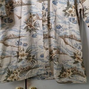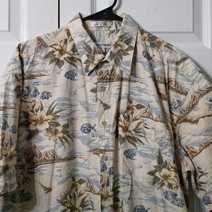 Pierre Cardin tropical island green print button down casual vacation shirt