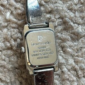 Gently used good condition Pierre Cardin women’s vintage dainty silver stainless steel bracelet watch one size measurements shown needs a new battery